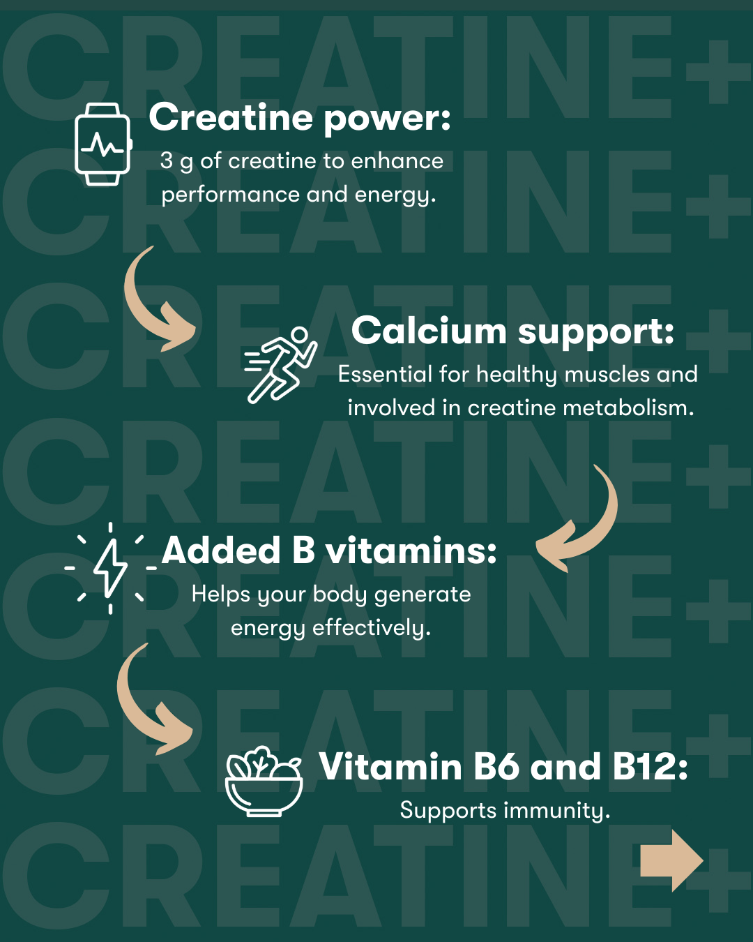 Diet alone (meat, fish) often doesn't offer enough — that’s where supplementing with Creatine+ makes a real difference.