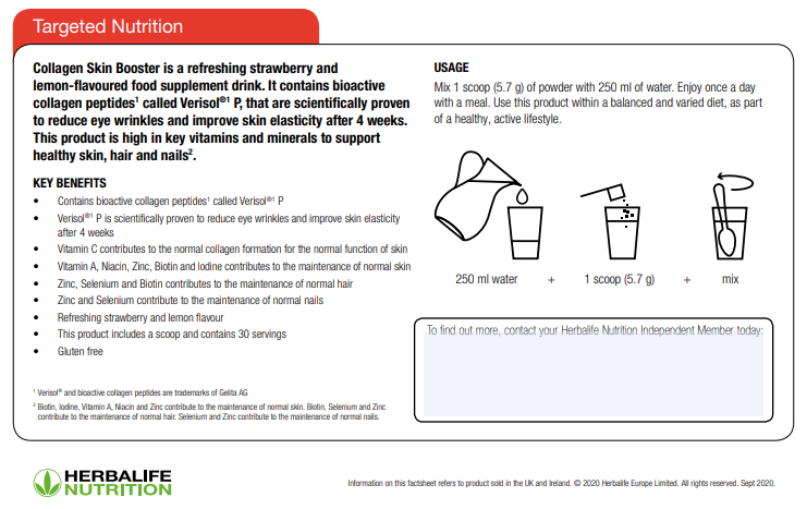 - Formulated with Verisol®* collagen which has been tested to show support of skin elasticity and the reduction of fine wrinkles.†